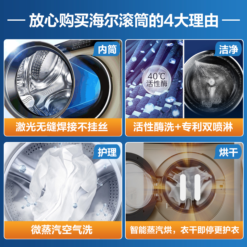 海尔(Haier)滚筒洗衣机全自动 以旧换新 高温除菌蒸汽除螨 10公斤洗烘一体 BLDC变频电机 EG100HB129S2184件已付款抢! -