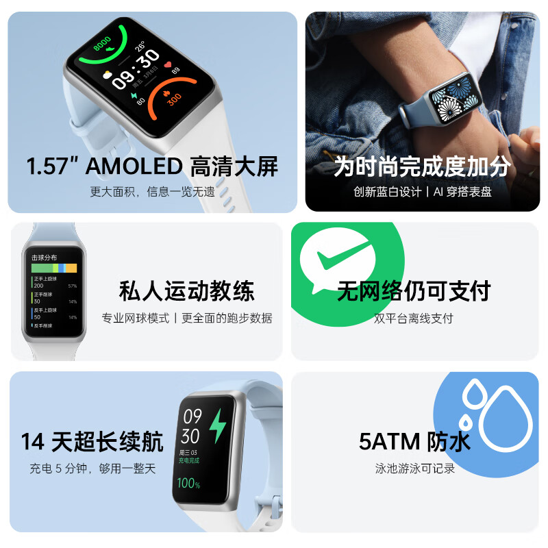 OPPO 手环 2 标准版 暗夜黑 智能手环男女运动手环 适用苹果安卓鸿蒙手机系统 心率血氧睡眠监测大屏离线支付3436件已付款抢! -