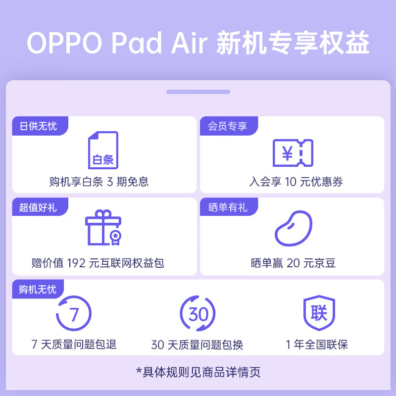 OPPO Pad Air 平板 10.36英寸 2K高清护眼屏 7100mAh 跨屏互联 4+128GB 影音娱乐办公学生网课平板电脑 雾灰9294件已付款抢! -