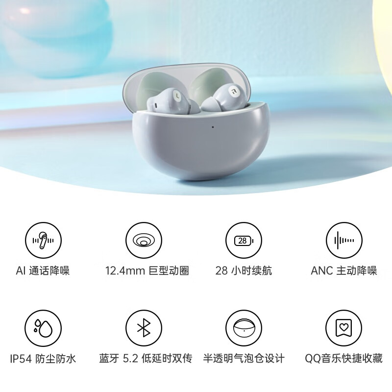 OPPO Enco Air2 Pro 真无线入耳式降噪蓝牙耳机 音乐游戏耳机 ANC主动降噪 通用小米苹果华为手机 月牙白5709件已付款抢! -