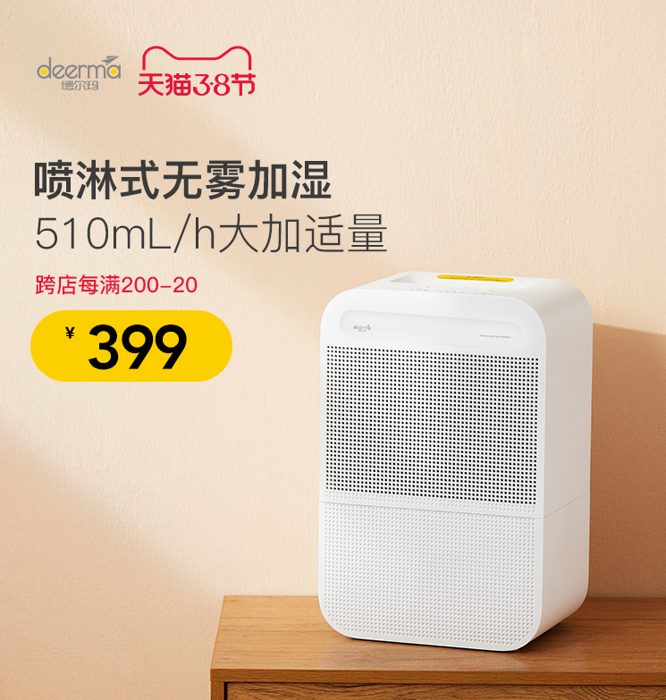 德尔玛(Deerma)加湿器 卧室客厅空气加湿器 加湿器婴儿适用 可加香薰一键调节雾量加湿器6317件已付款抢! -