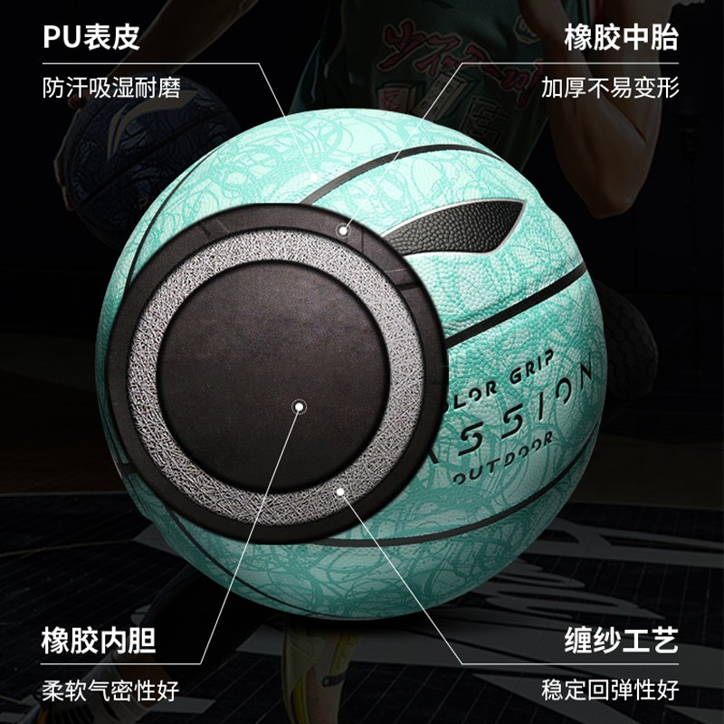 李宁篮球成人大学生室内外水泥地PU耐磨防滑中小学生男女青少年比赛儿童训练蓝球 7号 水绿蓝迷彩7647件已付款抢! -