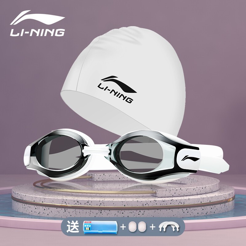 李宁(LI-NING)泳镜泳帽男女游泳套装高清防雾大框游泳眼镜防水硅胶泳帽游泳装备游泳镜平光近视可选 白色套装#非镀膜 平光不近视6854件已付款抢! -