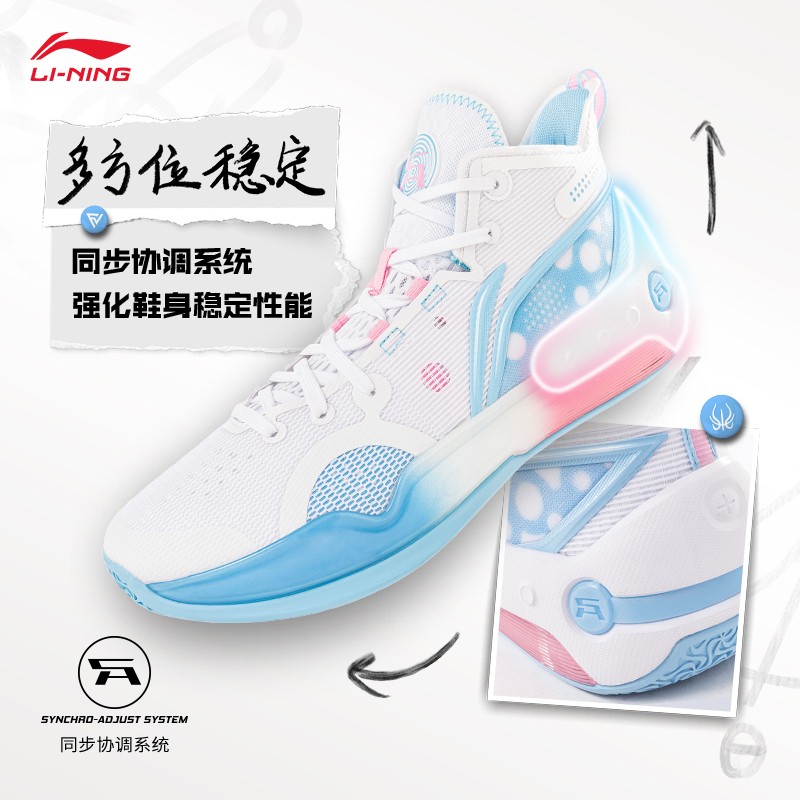 李宁男鞋篮球鞋韦德之道9 阳光之州男子反光回弹稳定中帮篮球专业比赛鞋ABAR119 粉色/黑色/甘蓝绿-9 451102件已付款抢! -