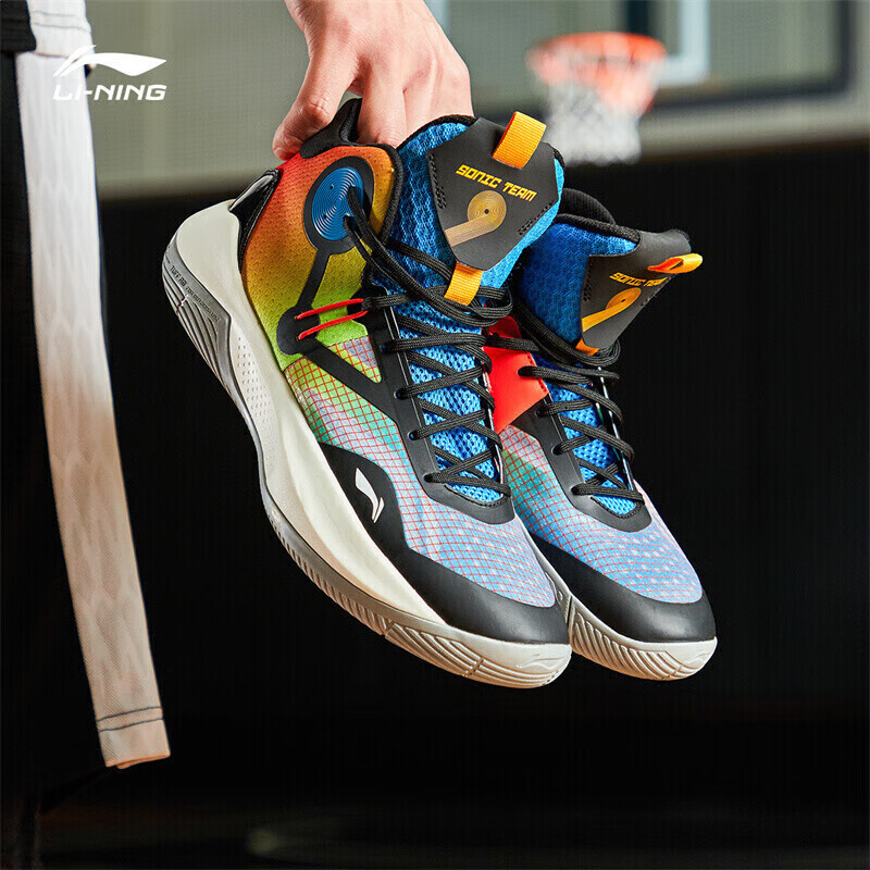 李宁男鞋篮球鞋音速9 Team男子弹性中帮篮球场地鞋ABPR017 黑色/帆航蓝/桔红色-8 453729件已付款抢! -