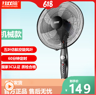 红双喜 台地两用 空气循环扇 四档可调79元2606件已付款抢! -