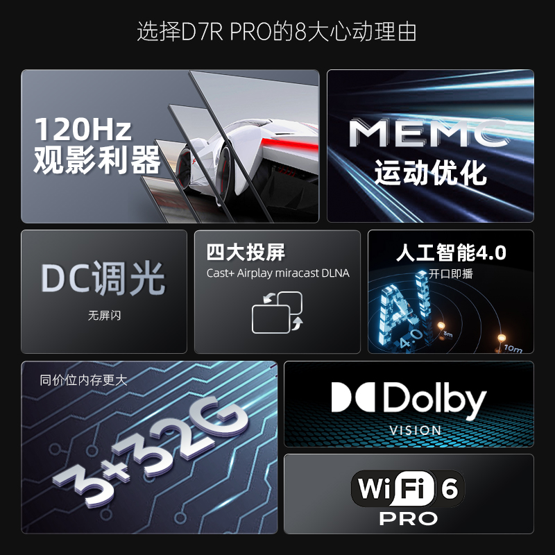 长虹65D7R PRO 65英寸狂暴120Hz高刷 3+32GB wifi6 8K解码 云游戏 智能平板液晶LED电视机 以旧换新1171件已付款抢! -