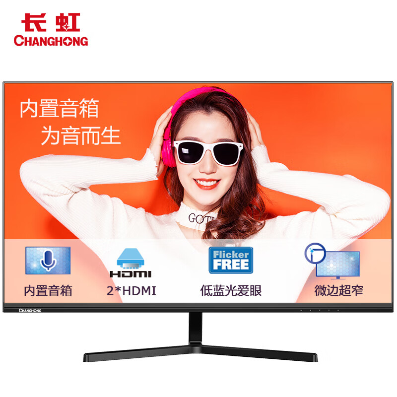 长虹 27英寸 内置音箱显示器 FHD全高清 75Hz 双HDMI接口 微边框广视角 低蓝光爱眼 电脑显示屏 27P820F8251件已付款抢! -