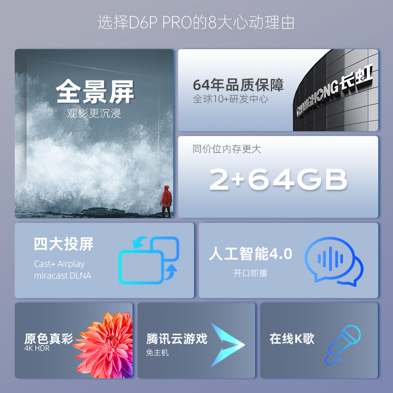 长虹65D6P PRO 65英寸2+64GB超大内存 远场语音 4K超高清 金属全景屏 平板LED液晶电视机 以旧换新8497件已付款抢!