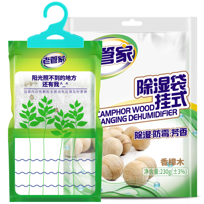老管家 香樟木除湿袋衣柜挂式干燥剂室内房间汽车吸湿防潮防霉剂230g*68219件已付款抢! -
