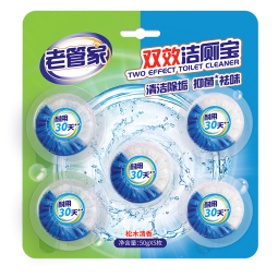 老管家双效洁厕宝50g*5松木清香蓝泡泡洁厕灵自动冲洗马桶厕所清洁剂3873件已付款抢!