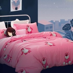 MERCURY 水星家纺 萌萌草莓熊 40支全棉四件套 1.8m1463件已付款抢!