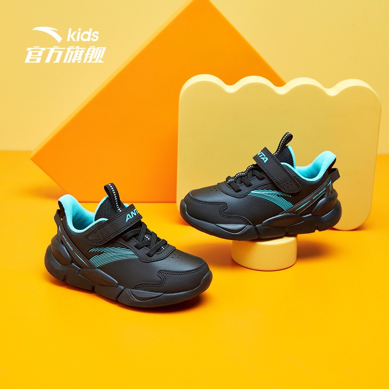 安踏儿童男女童休闲鞋2022年秋季新款跑鞋男小童休闲时尚运动鞋男女同款 【革面/男童】黑/荧光水绿9951A-3 30/18.5cm8752件已付款抢! -