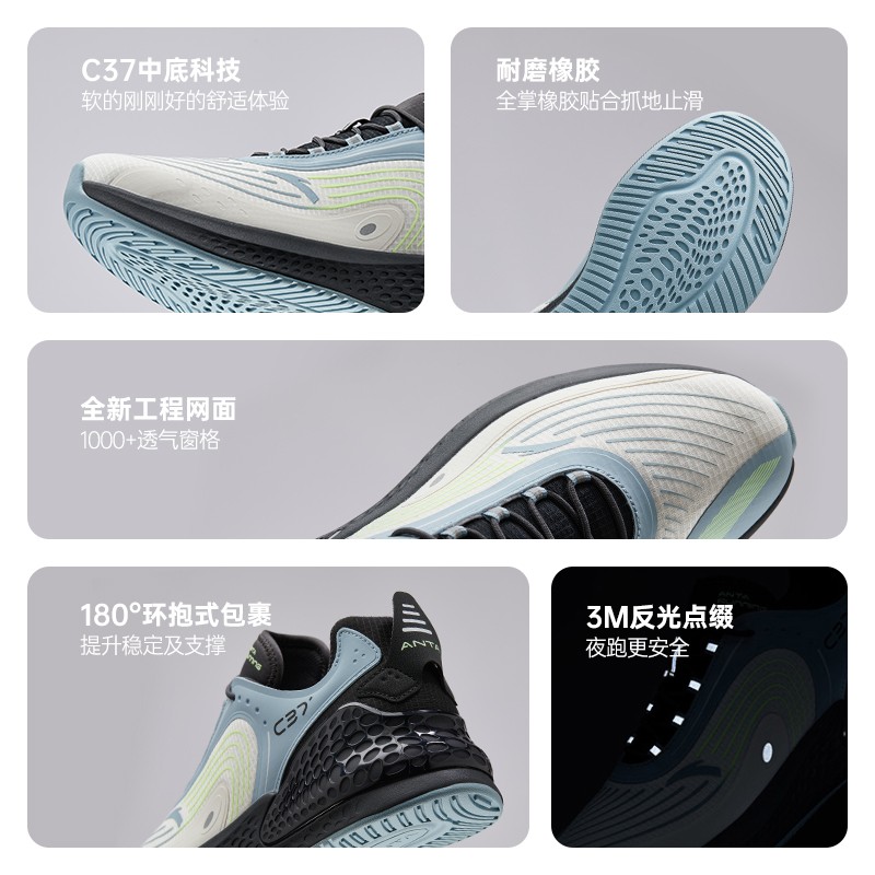 【C37+】安踏运动鞋男鞋2022秋季新款软底透气休闲跑步鞋子男轻便减震官方旗舰网店 象牙白/薄蓝色/碳灰-3 7(男40)1171件已付款抢! -
