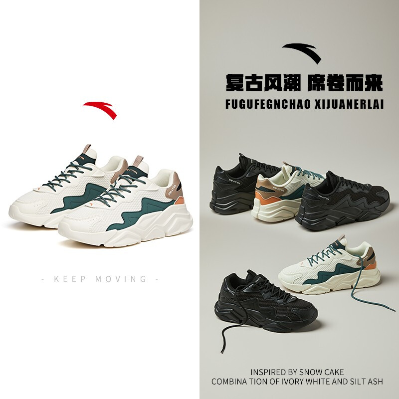 安踏 时尚运动鞋男2022秋季情侣同款低帮网面厚底跑步老爹休闲鞋 浅米白/亚麻灰-4 8.5(男42)4803件已付款抢! -