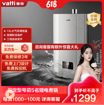 华帝(vatti)13升燃气热水器天然气热水器家用节能省气变频恒温主动安防开机自检三档变升JSQ24-i12061-13【618提前购!每满1000-100,价保618!壕礼等你来拿】【咨询客服额外领神券】新品推介!全程恒温畅洗!全国联保!2095件已付款抢!