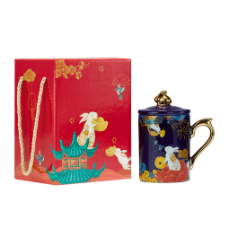 共禾京品(JINGREPUBLIC) X周大福联名款钱兔无量陶瓷马克杯高颜值大容量水杯创意商务礼品 单杯手提礼盒-宝石蓝色7677件已付款抢! -