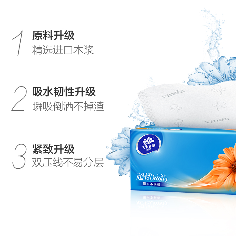 维达(Vinda) 抽纸 超韧10包*3层100抽纸巾 抽取式面巾纸 真S码 湿水不易破1588件已付款抢! -