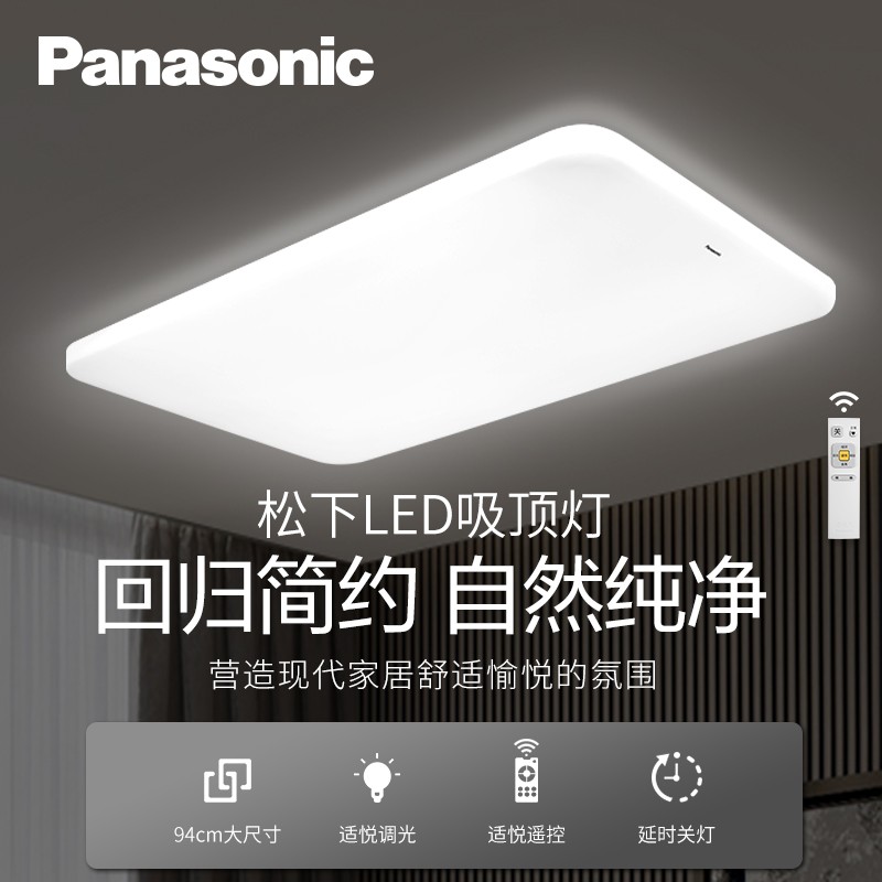 松下(Panasonic)客厅灯吸顶灯现代简约遥控调光调色卧室阳台厨房灯灯具套餐 超薄长方形灯饰100瓦6737件已付款抢! -