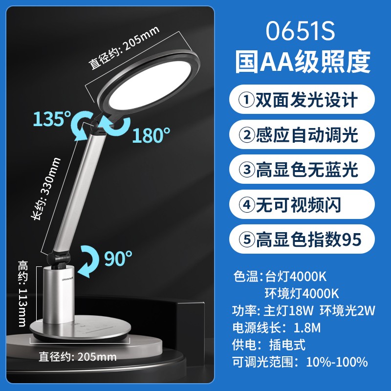 松下(Panasonic)LED护眼台灯国AA级大学生学习书桌台灯保视力儿童宿舍阅读床头灯致婉系列 致婉国AA级照度护眼台灯银色 HHLT0651S8311件已付款抢! -