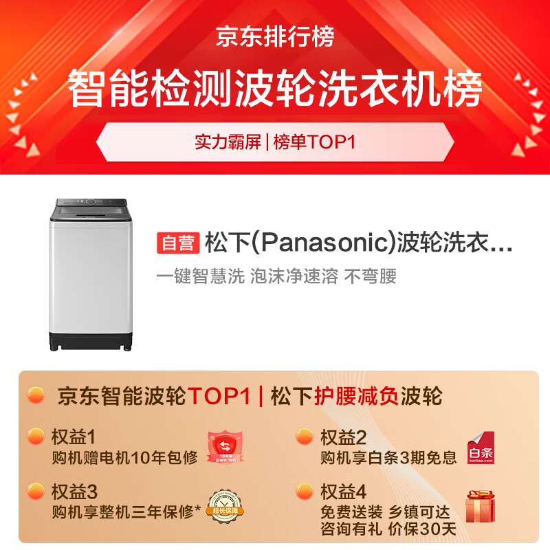 松下(Panasonic)洗衣机波轮8公斤全自动 不弯腰 节水立体 漂宽瀑布水流大容量 桶洗净XQB80-UEHBF以旧换新5307件已付款抢! -