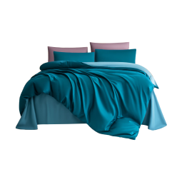 京东京造 国标A类60支缎纹四件套纯棉被套床单新疆长绒棉床品1.5m床孔雀蓝3651件已付款抢! -