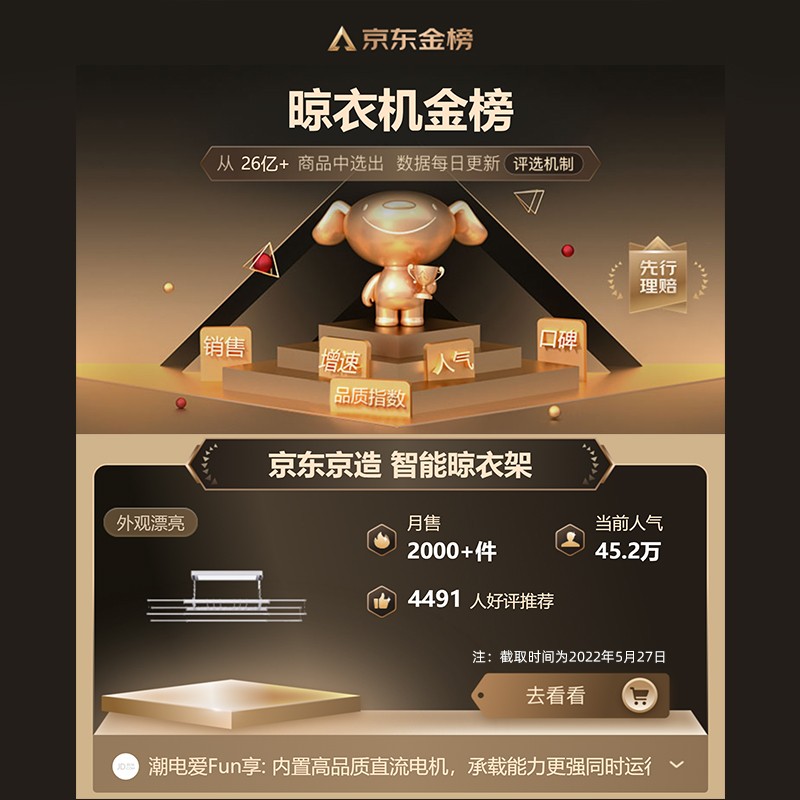 京东京造 智能电动晾衣架 阳台折叠晾衣机 大屏照明 离线声控遥控升降 4杆伸缩衣杆被杆 带6根母婴杆 升级款1064件已付款抢! -