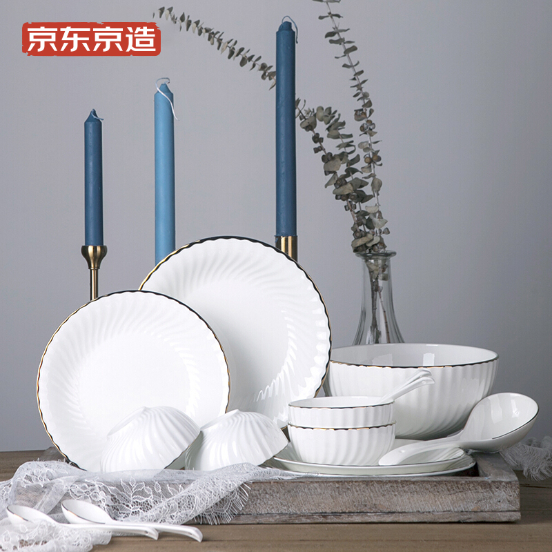 京东京造 白月光-鎏金骨瓷系列 陶瓷餐具套装 家用碗碟套装 进口真金描边 可微波炉使用 14头纯白9891件已付款抢! -