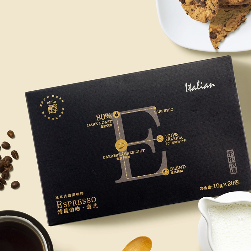 京东京造 100%阿拉比卡意式挂耳咖啡10g*20包 高度烘焙黑咖啡 送礼2226件已付款抢! -