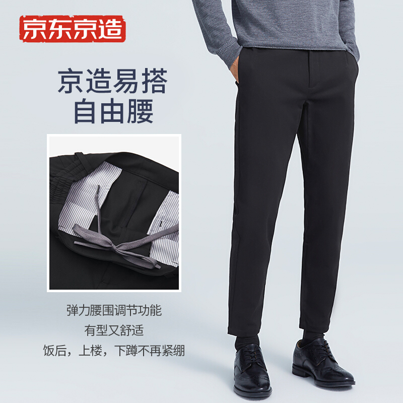 京东京造 【百搭裤】免烫西装裤男商务休闲裤男裤子男裤潮流弹力直筒裤 黑色 339647件已付款抢! -