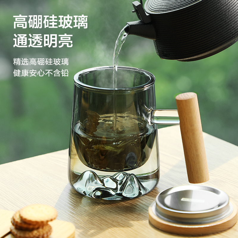 京东京造 观山玻璃杯泡茶杯 茶水分离杯 高颜值商务男女办公水杯440ml9790件已付款抢! -