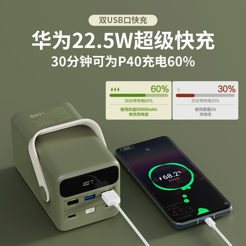 京东京造 50000毫安时充电宝22.5W快充大容量户外移动电源PD双向快充智能数显LED照明适用苹果华为小米9817件已付款抢! -