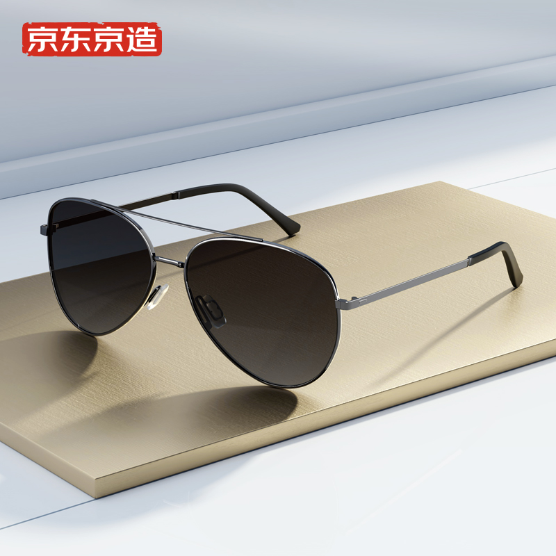 京东京造 偏光太阳镜男女中性墨镜驾驶镜高清 基础飞行员蛤蟆 防紫外线 轻便合金 银枪色JZ011生日礼物男3693件已付款抢! -