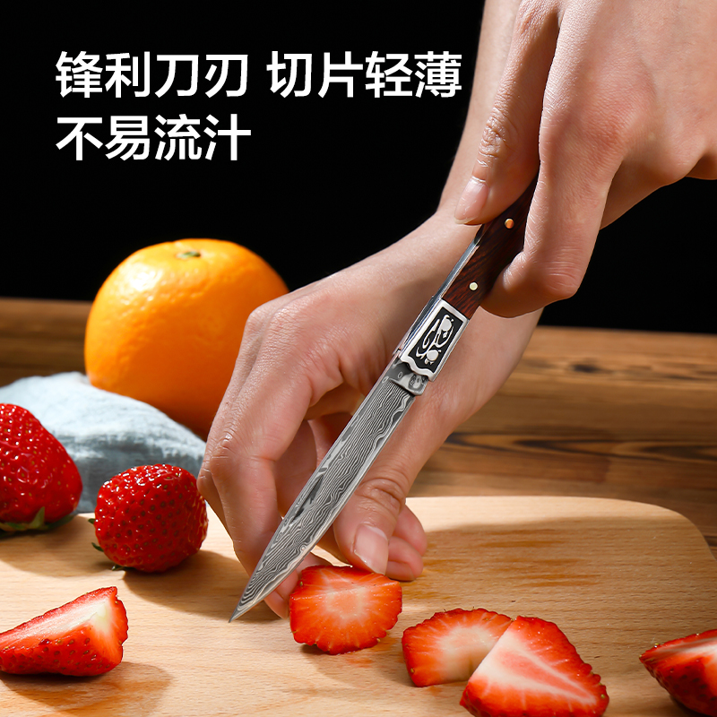 京东京造 67层大马士革折叠刀 进口酸枝木手柄 便携户外多功能刀 家用水果刀8070件已付款抢! -