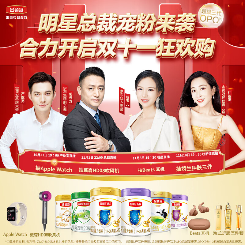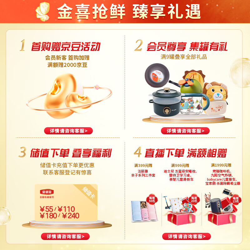 伊利金领冠珍护幼儿配方奶粉 3段900*3+130*2+水杯(1-3岁幼儿适用)5847件已付款抢! -
