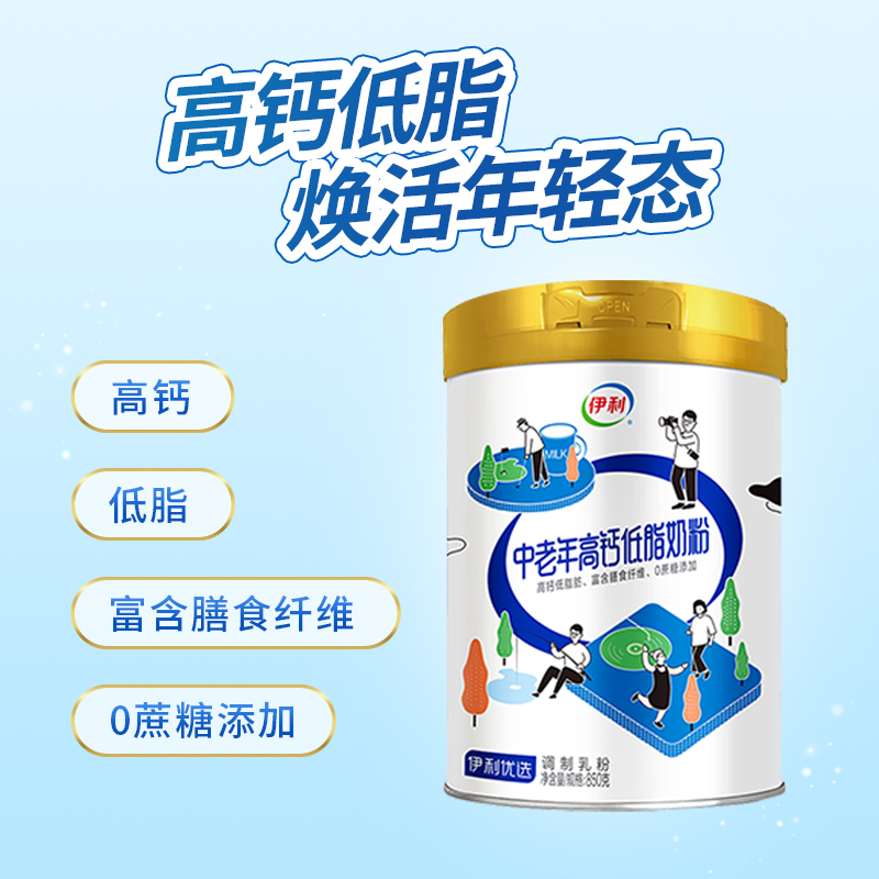 伊利 成人奶粉 中老年高钙低脂850g罐装 0蔗糖添加 富含膳食纤维 冲饮 送长辈6631件已付款抢! -