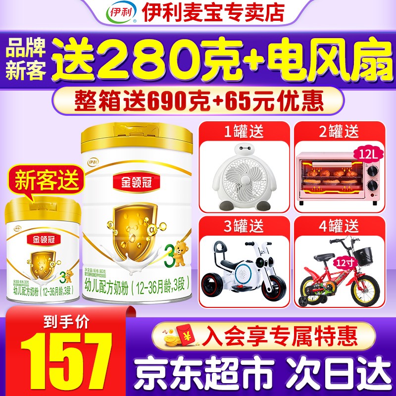 【次日达】伊利金领冠3段奶粉幼儿基础配方牛奶粉三段960克新包装(比900克加量实惠装)5824件已付款抢! -