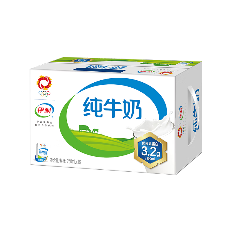 伊利 纯牛奶250ml*16盒/礼盒装 全脂营养早餐伴侣 优质乳蛋白7905件已付款抢! -