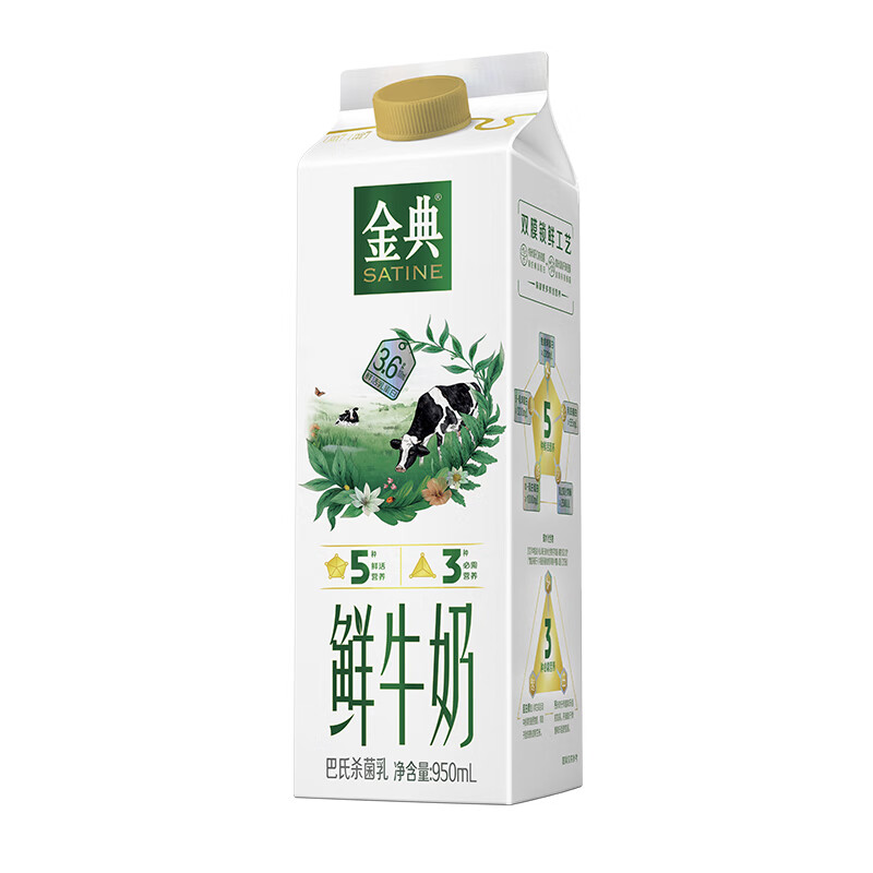 伊利 金典 高品质鲜牛奶 1.8倍鲜活营养 950ml 订鲜奶 鲜奶定期购 72°巴氏杀菌低温鲜奶 中秋送礼8019件已付款抢! -