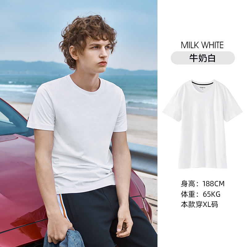 班尼路纯色T恤打底衫新疆棉短袖体恤潮情侣装春夏100%棉半袖上衣 01W 漂白圆领 XS1868件已付款抢! -