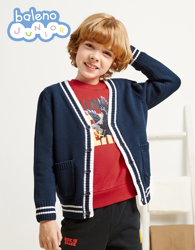 班尼路童装 秋冬款针织开衫男童洋气修身时尚学院风休闲长袖帅气外套上衣棉质中大童毛衣 08B深蓝 130cm1883件已付款抢! -