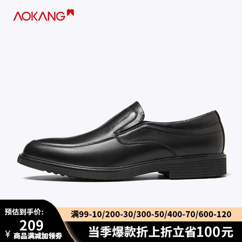 奥康男鞋舒适商务头层牛皮休闲皮鞋圆头低帮套脚舒适工作鞋不闷脚新款 黑色F213211066 392286件已付款抢!