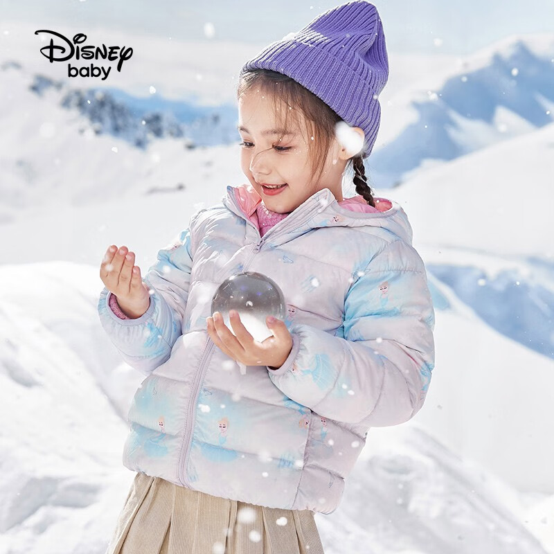 迪士尼童装儿童轻薄羽绒服春秋新款洋气男童女童卡通连帽外套 晕染灰姑娘【女童】 130cm4420件已付款抢! -