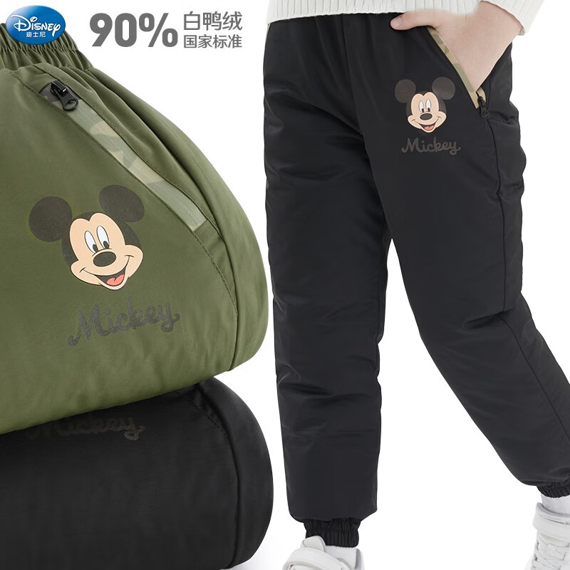迪士尼(Disney)儿童羽绒裤女童男童裤子秋冬轻薄白鸭绒洋气外穿女宝宝保暖棉裤 男童米奇黑色 633 110cm 参考身高105-1159073件已付款抢! -