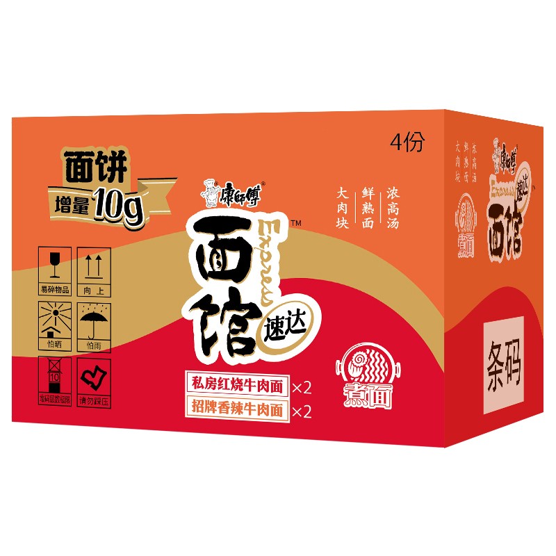 速达面馆 私房红烧牛肉面190g*2盒+招牌香辣牛肉面189g*2盒 康师傅方便面 半筋半肉牛肉面 煮面 汤面4834件已付款抢! -