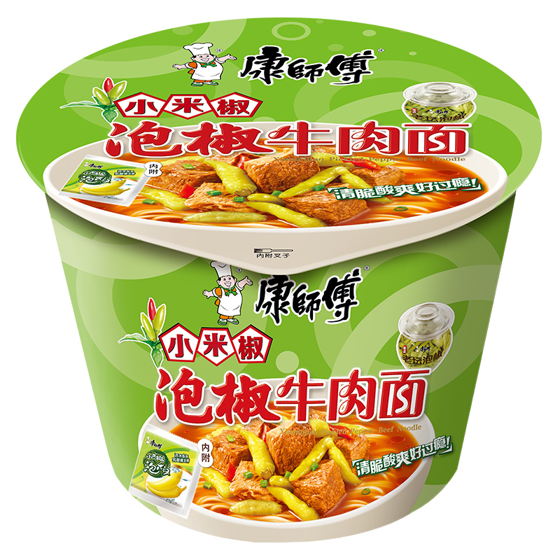 康师傅泡椒牛肉面 107g*12桶 方便面整箱 泡面桶装 速食 地道小米椒8632件已付款抢! -