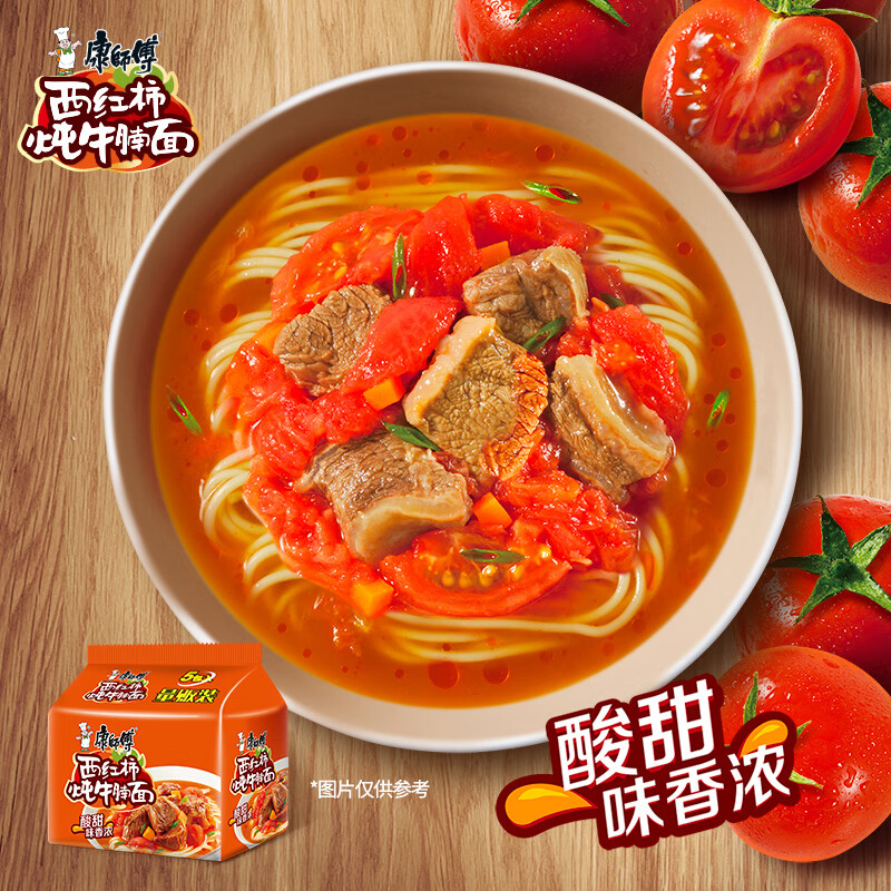 康师傅 方便面 经典西红柿牛腩 泡面袋装速食 五连包 101g*5包5176件已付款抢! -