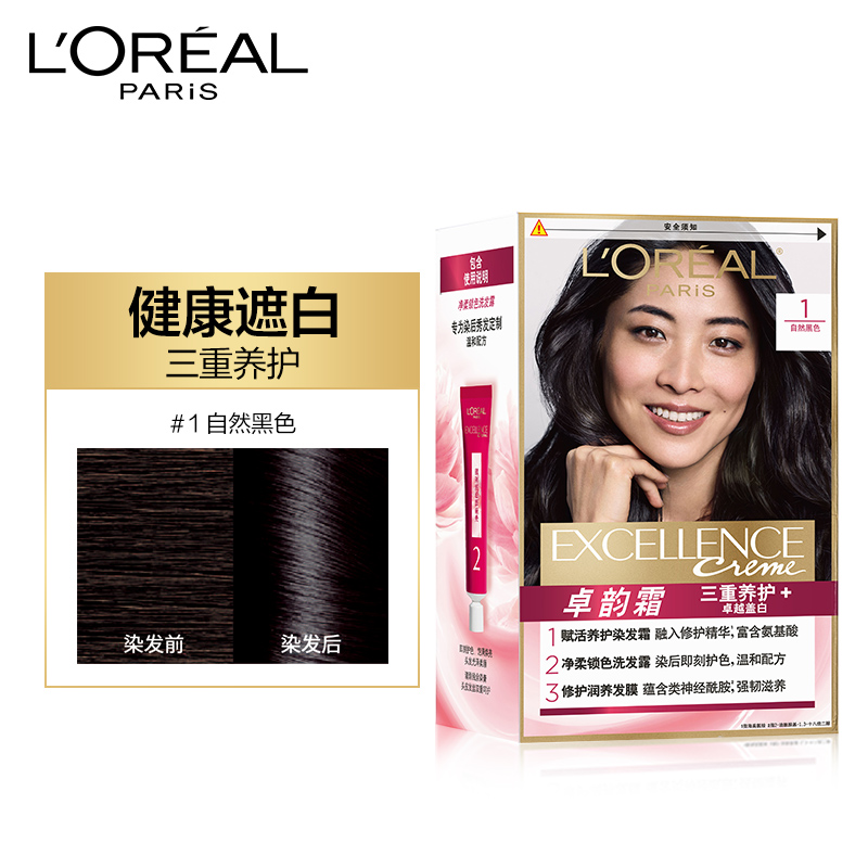 欧莱雅(LOREAL)卓韵霜护发染发霜#1(自然黑色)( 不伤发染发膏 染发剂 遮白盖白 男女通用)2257件已付款抢! -