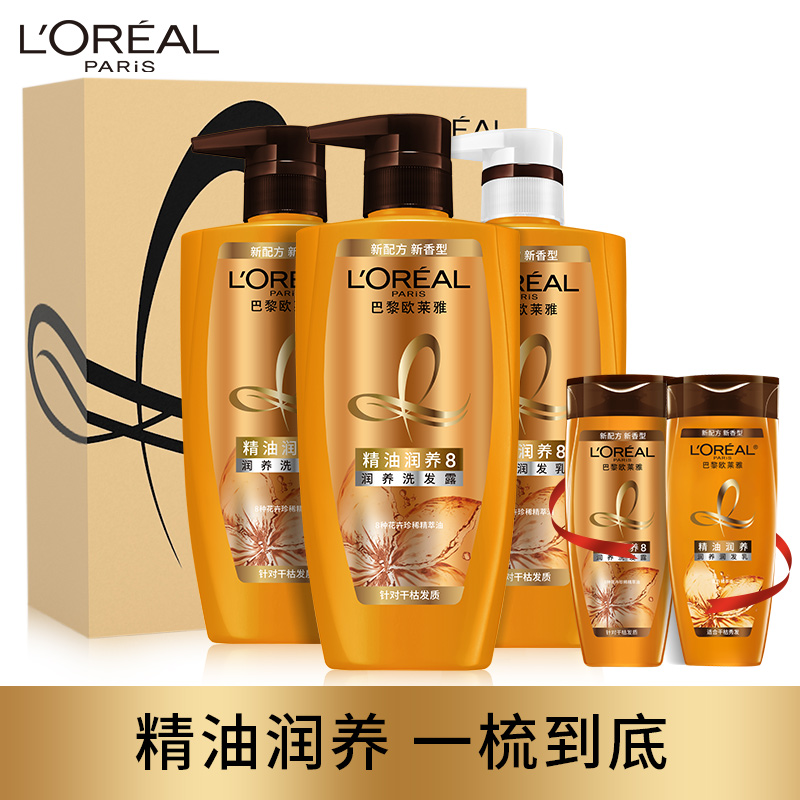 欧莱雅(LOREAL)精油润养洗发露500ml*2+欧莱雅精油润养润发乳500ml8488件已付款抢!