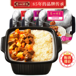 广州酒家 自热米饭 红烧牛肉 305g + 卤肉 325g + 腊味双拼 285g 3盒装49.9元(满减+优惠券,实付49.9元包邮)4017件已付款抢! -